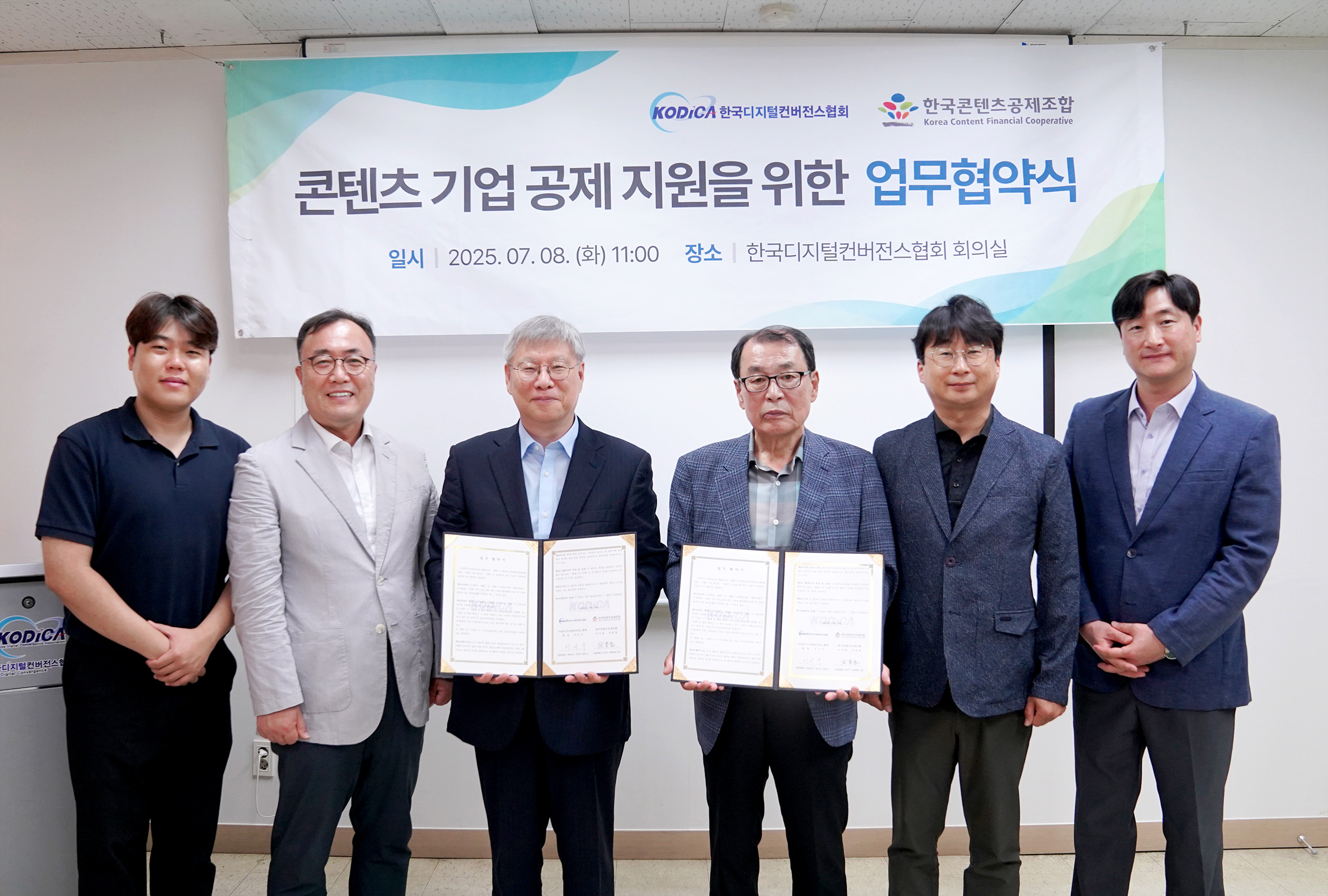 2025년 7월 8일, 한국디지털컨버전스협회(회장 이근구)와 한국콘텐츠공제조합(이사장 심동섭)이 보증공제 업무 이용 활성화 및 상호 발전을 위한 업무협약(MOU)을 체결하였습니다. 협약에 따라 한국디지털컨버전스협회는 소속 회원사들이 한국콘텐츠공제조합의 보증공제 서비스를 보다 쉽게 이용할 수 있도록 적극 협력합니다. 특히 조합은 협회 회원사에게 기존 기관에서 제공받는 이행보증 수수료보다 할인된 조건으로 보증공제계약을 체결함으로써 실질적인 금융 혜택을 제공할 예정입니다. 이번 협약을 통해 협회 회원사는 ▲입찰보증 ▲계약보증 ▲하자보증 ▲선금급보증 ▲성능보증 ▲인·허가보증 ▲상품판매대금보증 ▲지급보증 등 다양한 이행보증 상품을 활용할 수 있다. 이는 각종 계약 체결 및 이행 과정에서 계약 안정성을 확보하는 데 크게 기여할 것으로 기대됩니다.