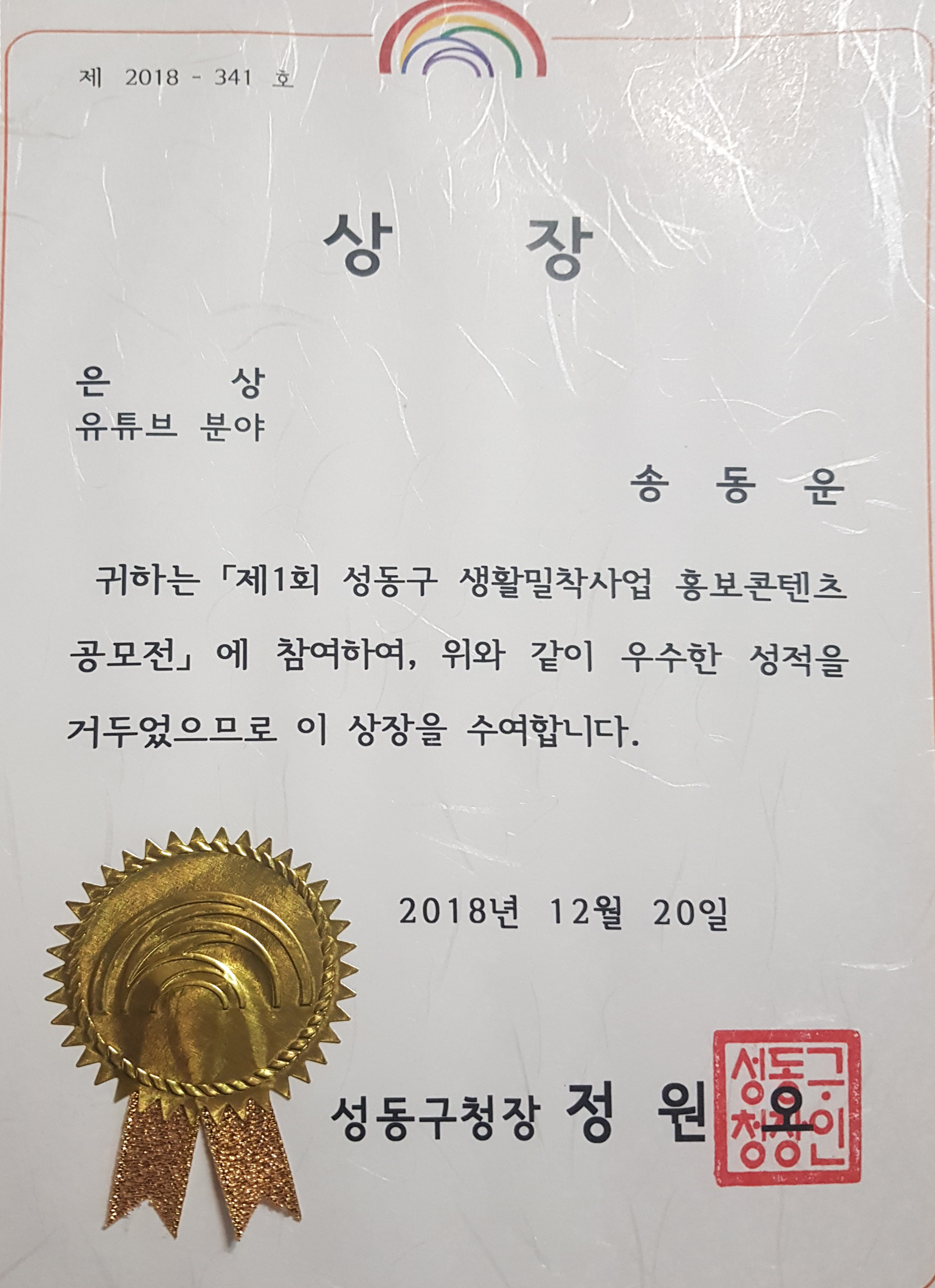 유튜브 분야 은상 수상작