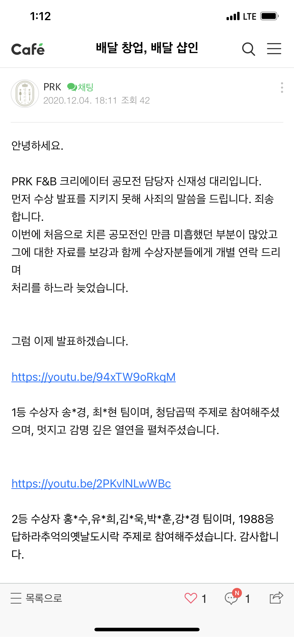 공모전 우수상 _[PRK F&B 공모전 수상작] 추억의 도시락 엄마의 손맛 _강O경, 김O욱, 박O훈, 유O희, 홍O수 가상현실 기반 디지털 영상제작 전문가 양성 과정 (2020.09.15~2020.12.30)