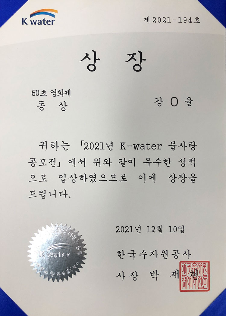 : 아라뱃길 청년 영상공모전 우수상 수상_김O호 외