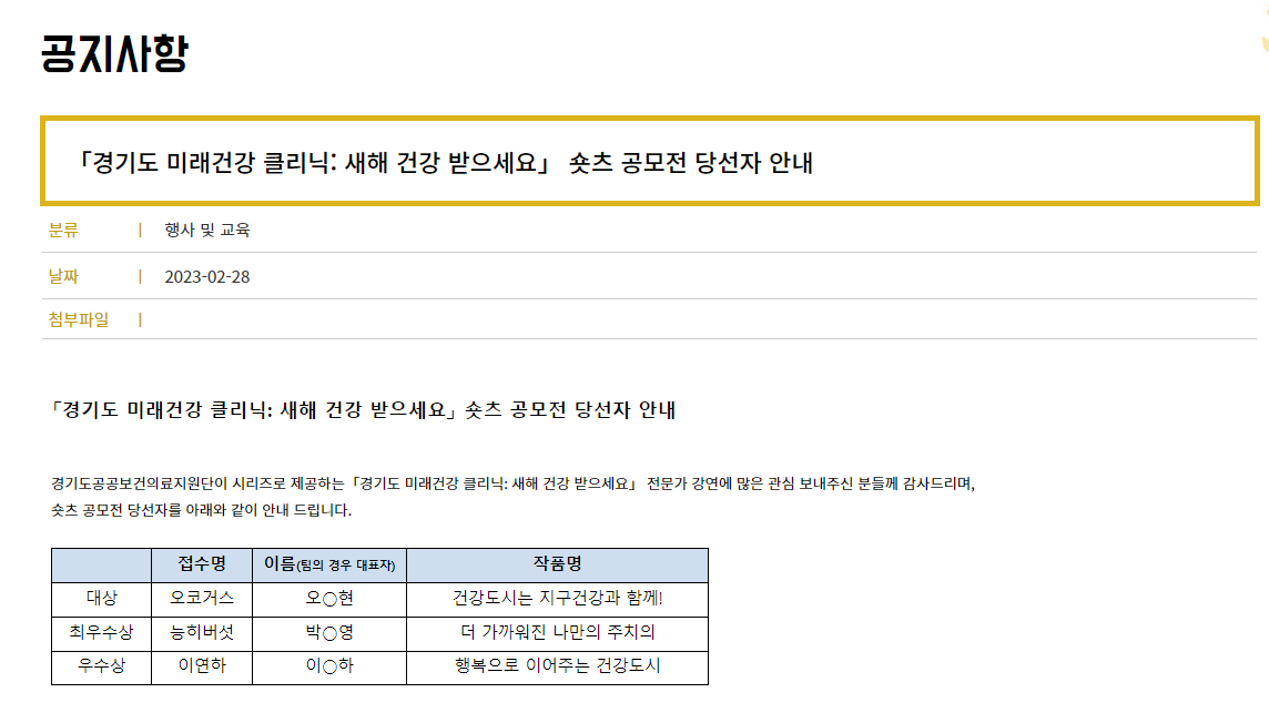 경기도 미래건강 클리닉: 새해 건강 받으세요. 숏츠 공모전 최우수상 수상