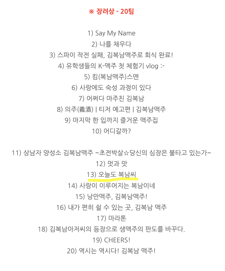 2025 제1회 BOK PLAY 영상 공모전 장려상 수상 '오늘도 복남씨'