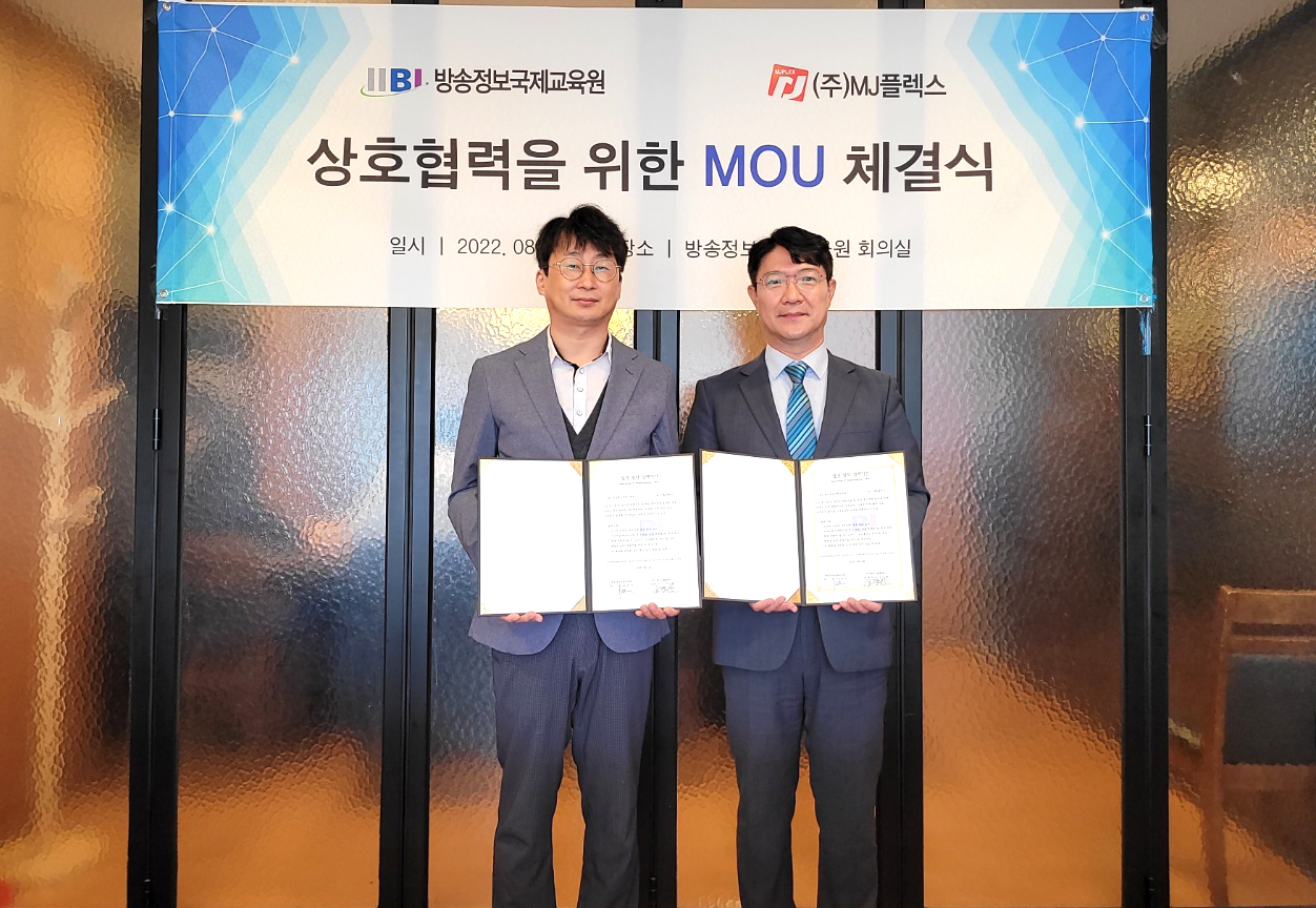 방송정보국제교육원은 MJ플렉스와 원활할 협력을 위한 업무협약(MOU)을 방송정보국제교육원 회의실에서 체결했어요. 이번 업무 협약을 통해 미디어 영상 및 IT 분야 관련사업 및 제반 행사관련 업무에 대해 양측간 적극 협력하기로 약정하고, 이에 따른 상호 실무업무 협의를 성실히 진행하기로 협의하였습니다.