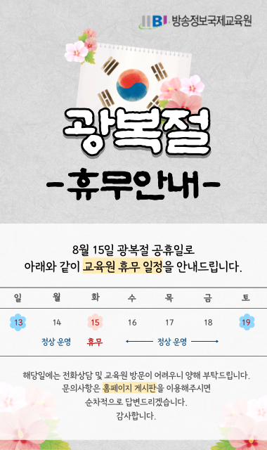 8월 15일 교육원 휴무안내