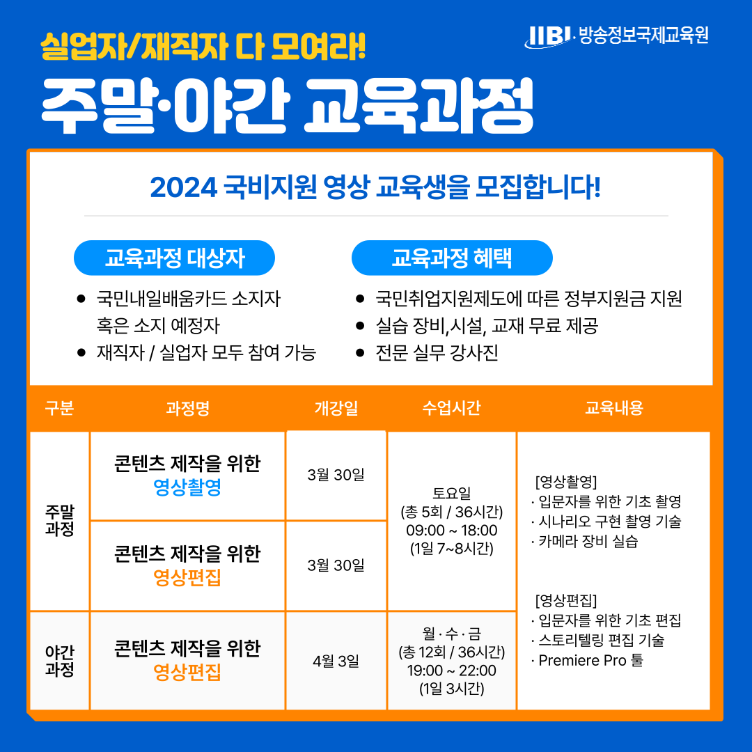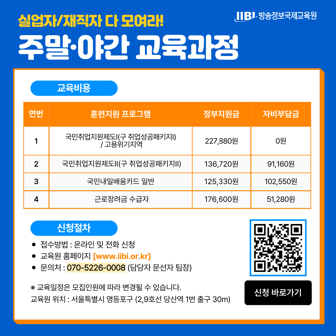 실업자 및 재직자 다 모여라! 주말 야간 교육과정