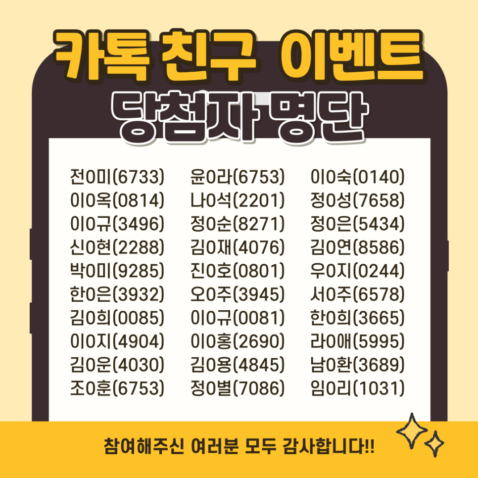 참여해주신 모든 카톡채널 친구분들 감사합니다!!!