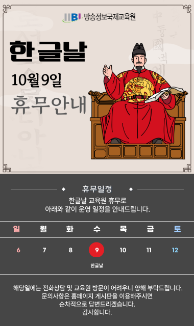 2024년 10월 한글날 휴무안내