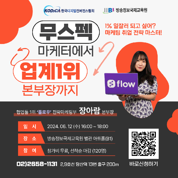 참여 취업준비생 누구나! 참가비 무료 (선착순 120여 명) 마케팅 취업 전략 마스터 취업 특강 신청하기 https://forms.gle/xRm4qJVeDp71iavu5 일시 2024년 6월 12일(수) 오후 16:00~18:00 (*강사님의 사정으로 일정이 변경되었음을 알려드립니다.)